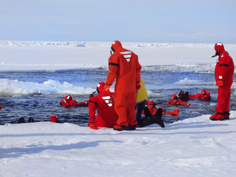 • Prêt d'équipement grand-froid complet : combinaison spéciale Arctique, chaussures, gants, chaussettes.